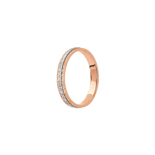 Alliance deux ors diamantée en or blanc palladié et or rose