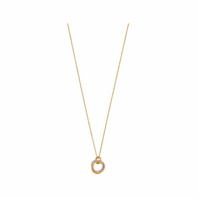 Collier chaîne avec pendentif 3 cercles entremêlés en or jaune, or blanc et or rose