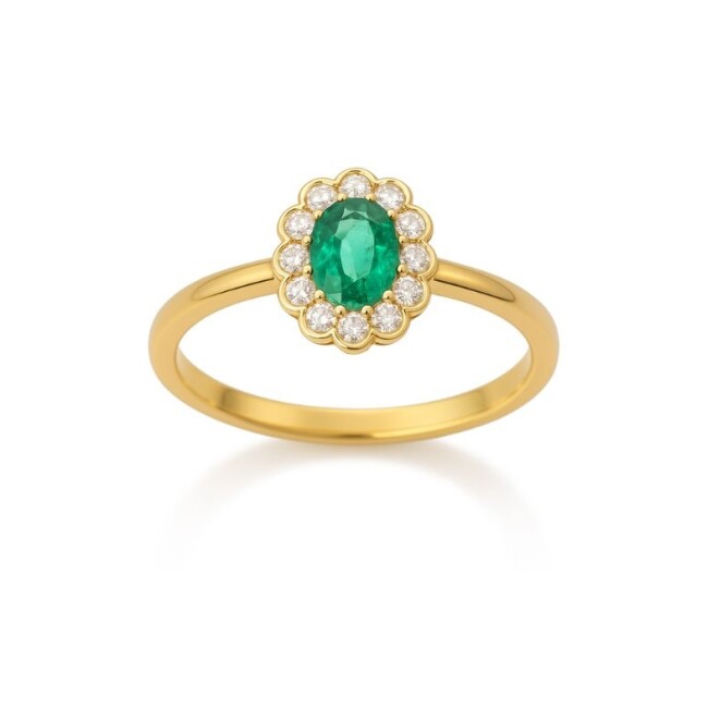 Bague or jaune émeraude et diamants