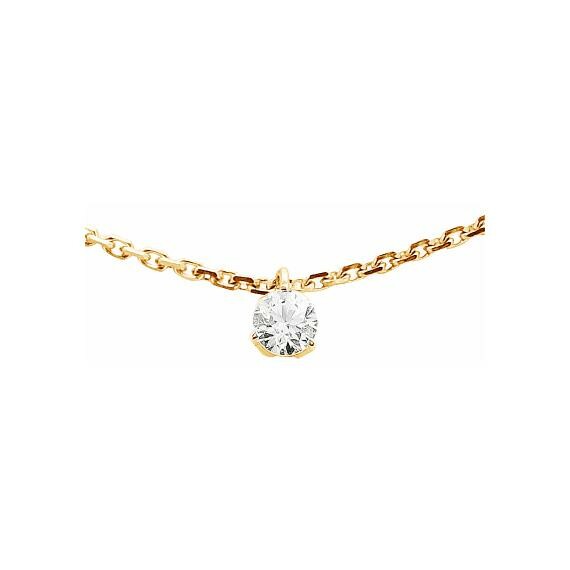 Collier serti 3 griffes en or jaune et diamant de 0.10ct