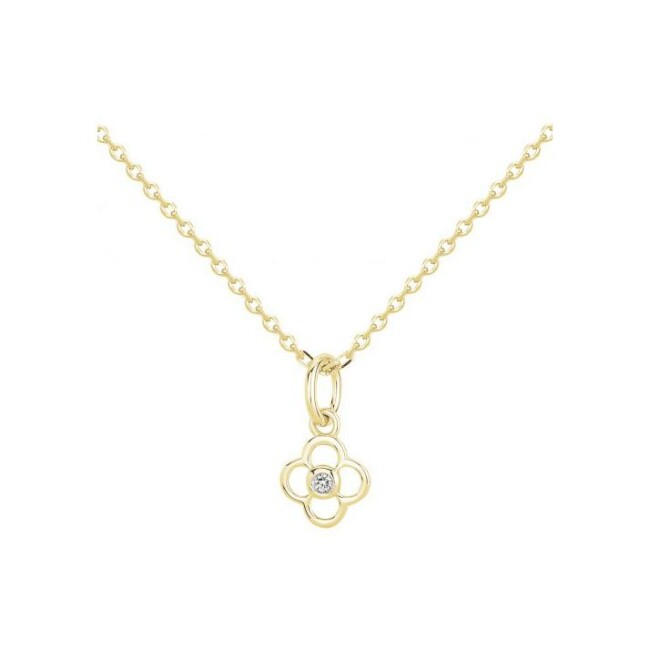 Collier en or jaune, perle de culture et diamant 0.01ct