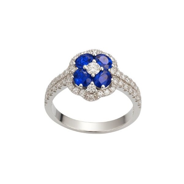 Bague or blanc, saphir et diamants