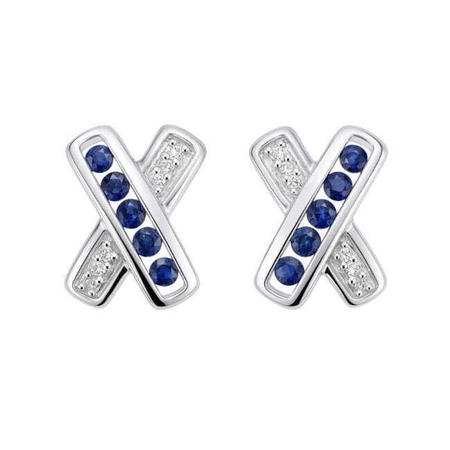 Boucles d'oreilles en or blanc diamant, et saphirs