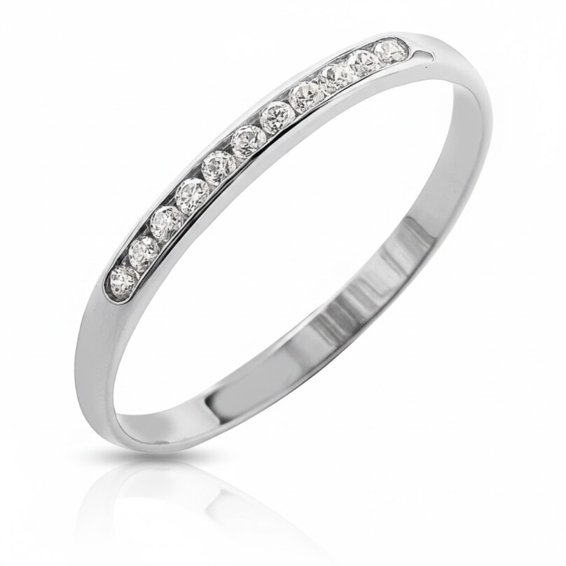 Sertie de 11 diamants synthétiques de haute qualité, cette bague offre une brillance exceptionnelle. Le diamant de synthèse, identique en tout point au diamant de mine sur les plans chimique et esthétique, représente le choix d'une joaillerie d'avenir, alliant éthique et excellence technologique. Chaque pierre est soigneusement calibrée pour créer un ruban de lumière continu sur le doigt.