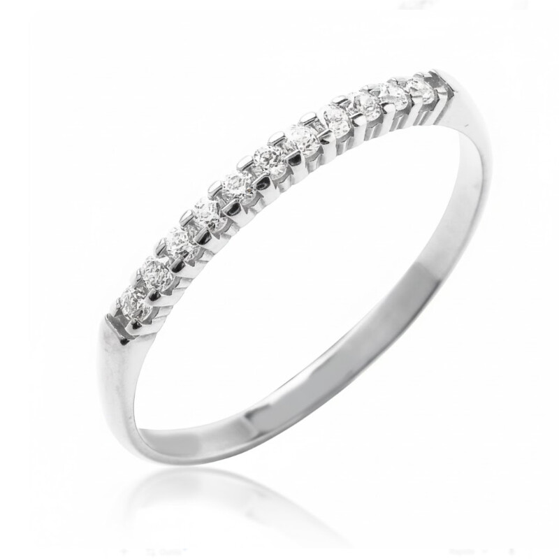 Sertie de 11 diamants synthétiques de haute qualité, cette bague offre une brillance exceptionnelle. Le diamant de synthèse, identique en tout point au diamant de mine sur les plans chimique et esthétique, représente le choix d'une joaillerie d'avenir, alliant éthique et excellence technologique. Chaque pierre est soigneusement calibrée pour créer un ruban de lumière continu sur le doigt.