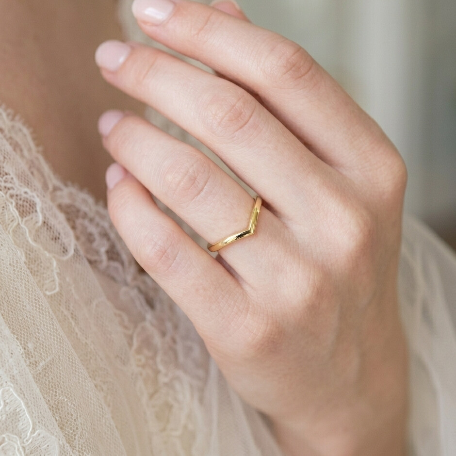 Épure contemporaine et élégance intemporelle définissent cette alliance en or jaune, pensée pour sublimer chaque geste avec discrétion et raffinement. Sa silhouette délicatement façonnée en forme de V apporte une touche moderne à un classique de la joaillerie, tout en épousant harmonieusement la courbe du doigt.