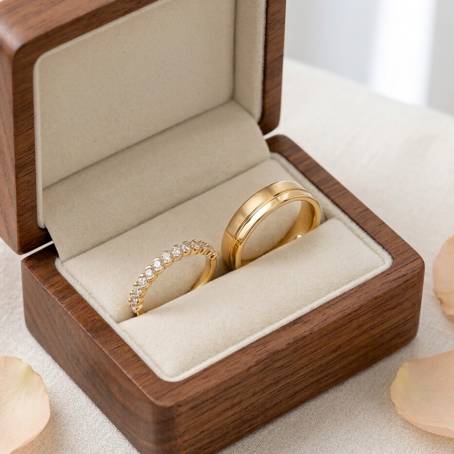 Alliances demi tour en or jaune et diamants de 0.25ct