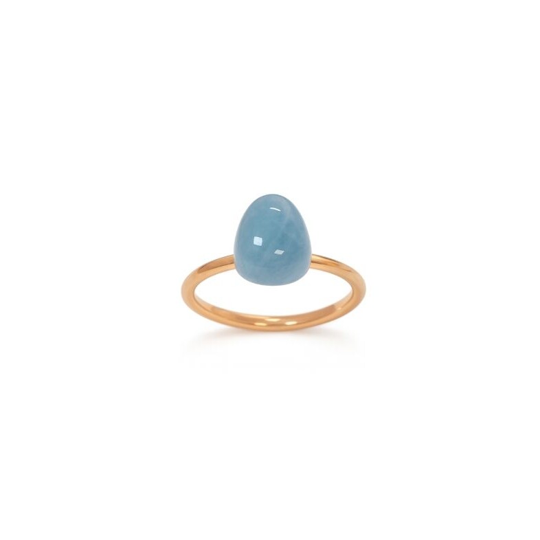 Sublime de simplicité, cette bague incarne l’élégance contemporaine dans sa forme la plus pure. Réalisée en or rose 18 carats, elle se distingue par son anneau délicatement poli, d’une finesse remarquable, qui met en valeur une aigue-marine laiteuse aux reflets doux et apaisants.