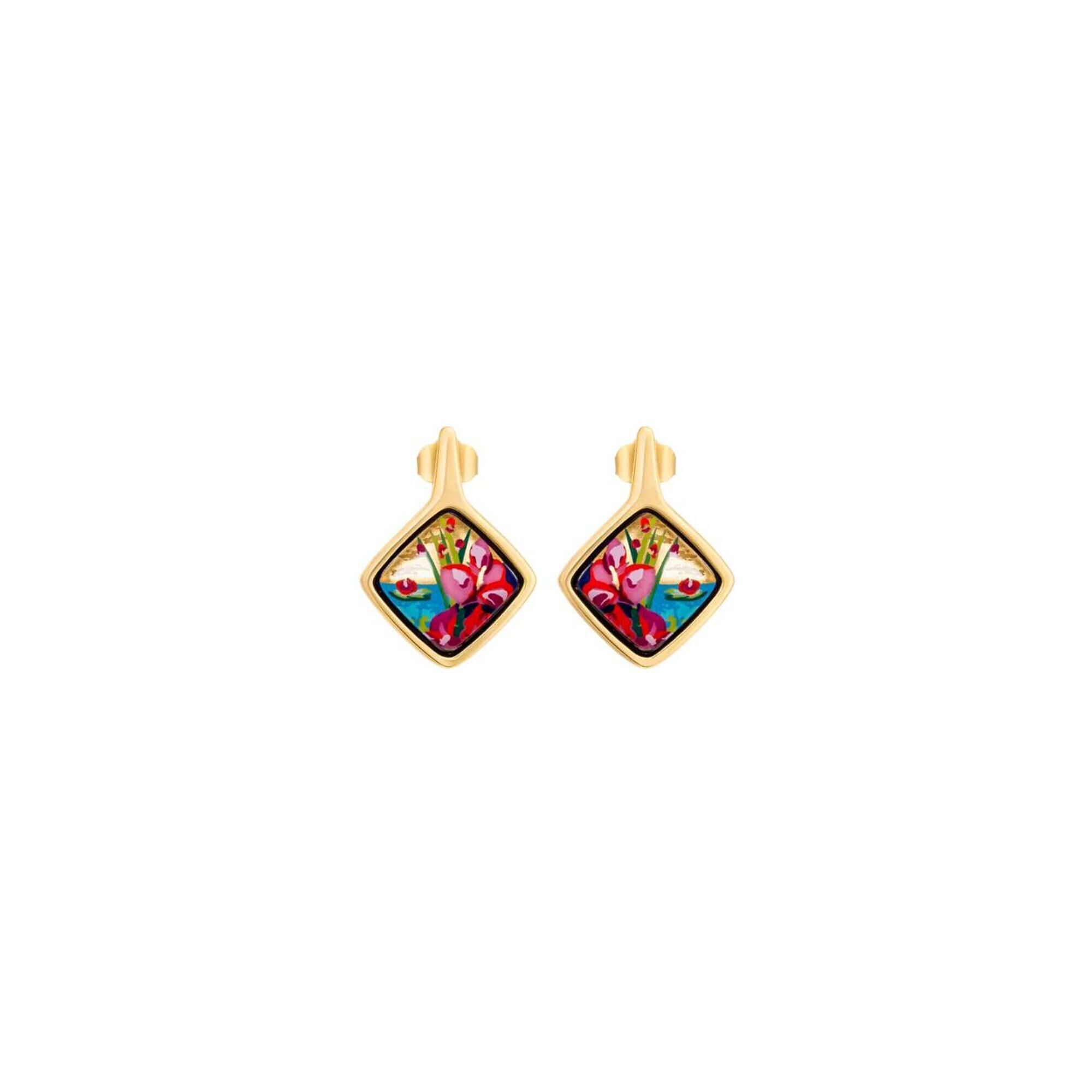 Boucles d'oreilles Carré FREYWILLE Hommage à Claude Monet en email et plaqué or