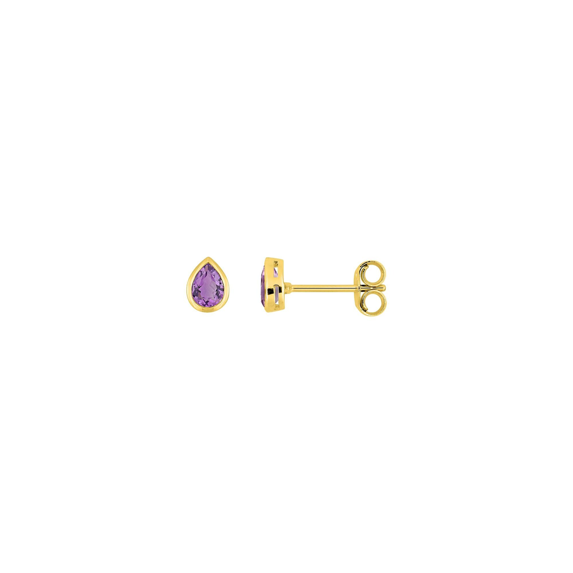 Boucles d'oreilles clous en or jaune et améthyste