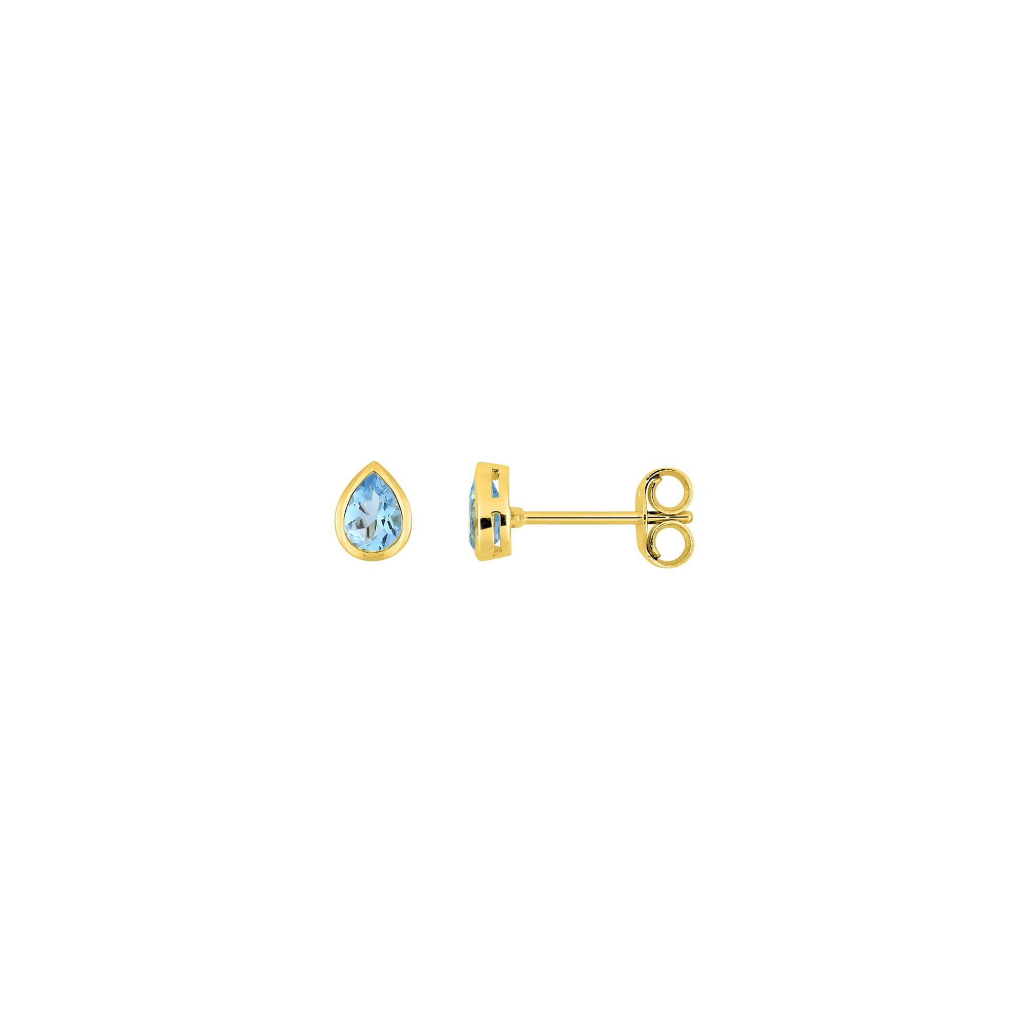 Boucles d'oreilles clous en or jaune et topaze bleue