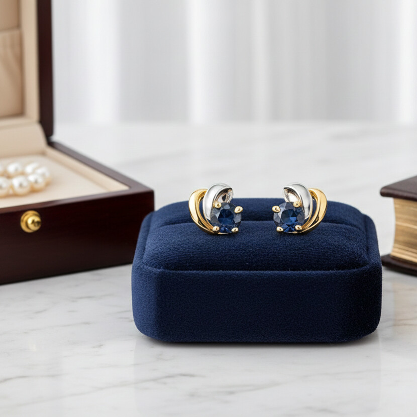 Boucles d'oreilles en or jaune, or blanc et saphir