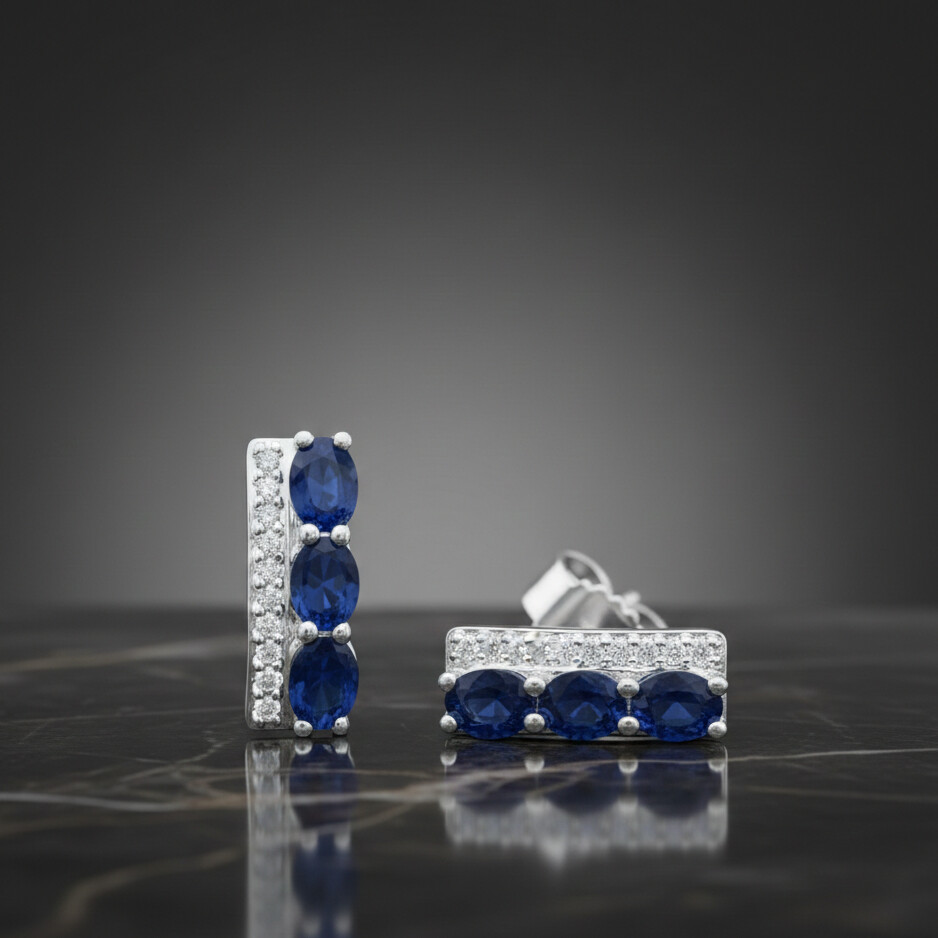 Leur design vertical met en majesté trois saphirs ovales d’un bleu profond, soigneusement sélectionnés pour l’intensité et l’homogénéité de leur couleur. Sertis à griffes, ils révèlent toute la richesse de leurs reflets veloutés à chaque mouvement.