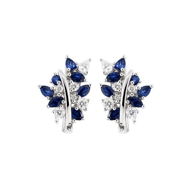Boucles d'oreilles en or blanc, saphir et diamants