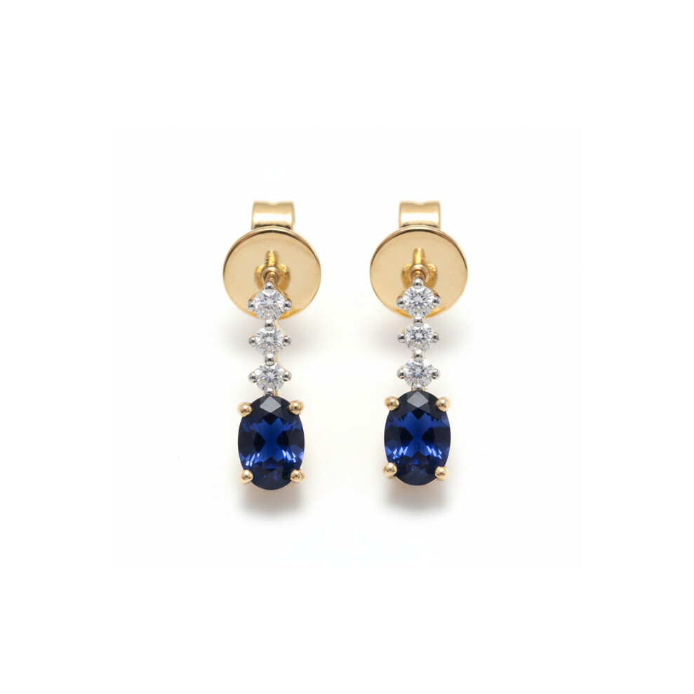 Boucles d'oreilles or jaune 18 cts saphir et diamants