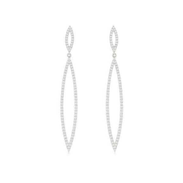 Ces magnifiques pendants d'oreilles sont exécutés en or blanc 18 carats, sublimé par un pavage de diamants d'une brillance exceptionnelle. Leur design en goutte allongé sculpte une ligne de lumière épurée et sophistiquée, idéale pour une allure résolument glamour.