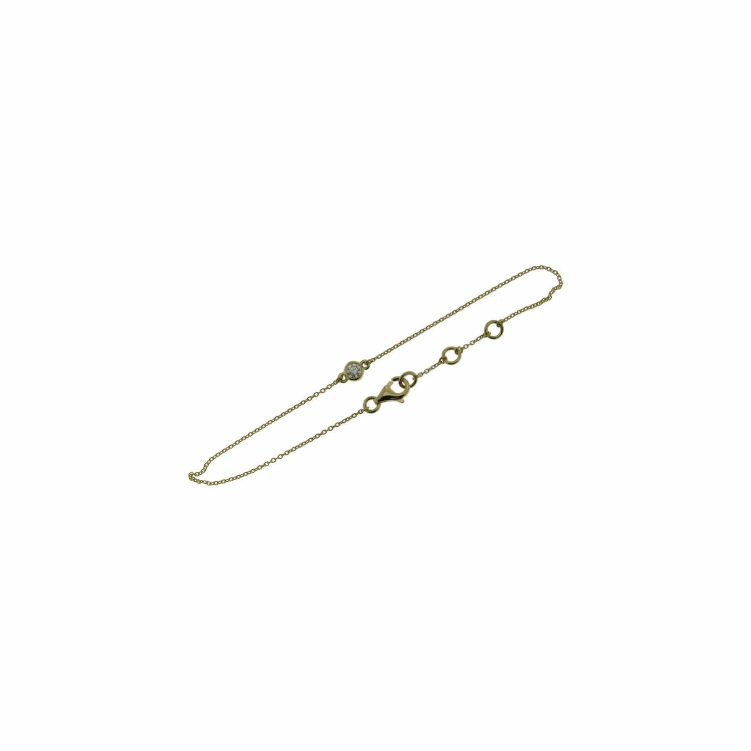D’une élégance absolue, ce bracelet en or jaune 18 carats incarne la quintessence du raffinement joaillier. Sa chaîne fine et délicate souligne avec subtilité la pureté d’un diamant central de 0,10 carat, soigneusement serti clos pour un éclat à la fois doux et contemporain.