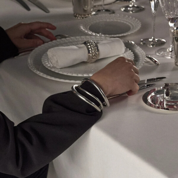 Ce jonc en argent massif sculpte la lumière à travers un design organique d'une fluidité absolue. Ses courbes épurées et sa torsion délicate incarnent une vision moderne du luxe, offrant une signature visuelle à la fois sobre et magistrale.