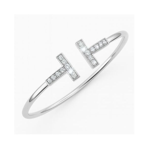 Chaque bras du "T" est finement pavé de diamants étincelants, créant un jeu de lumière captivant qui sublime la géométrie de la pièce. Cette alliance de l'or blanc lumineux et de la brillance intense des diamants fait de ce bracelet une déclaration de style raffinée, parfaite pour ajouter une touche de luxe discret à toute tenue.
