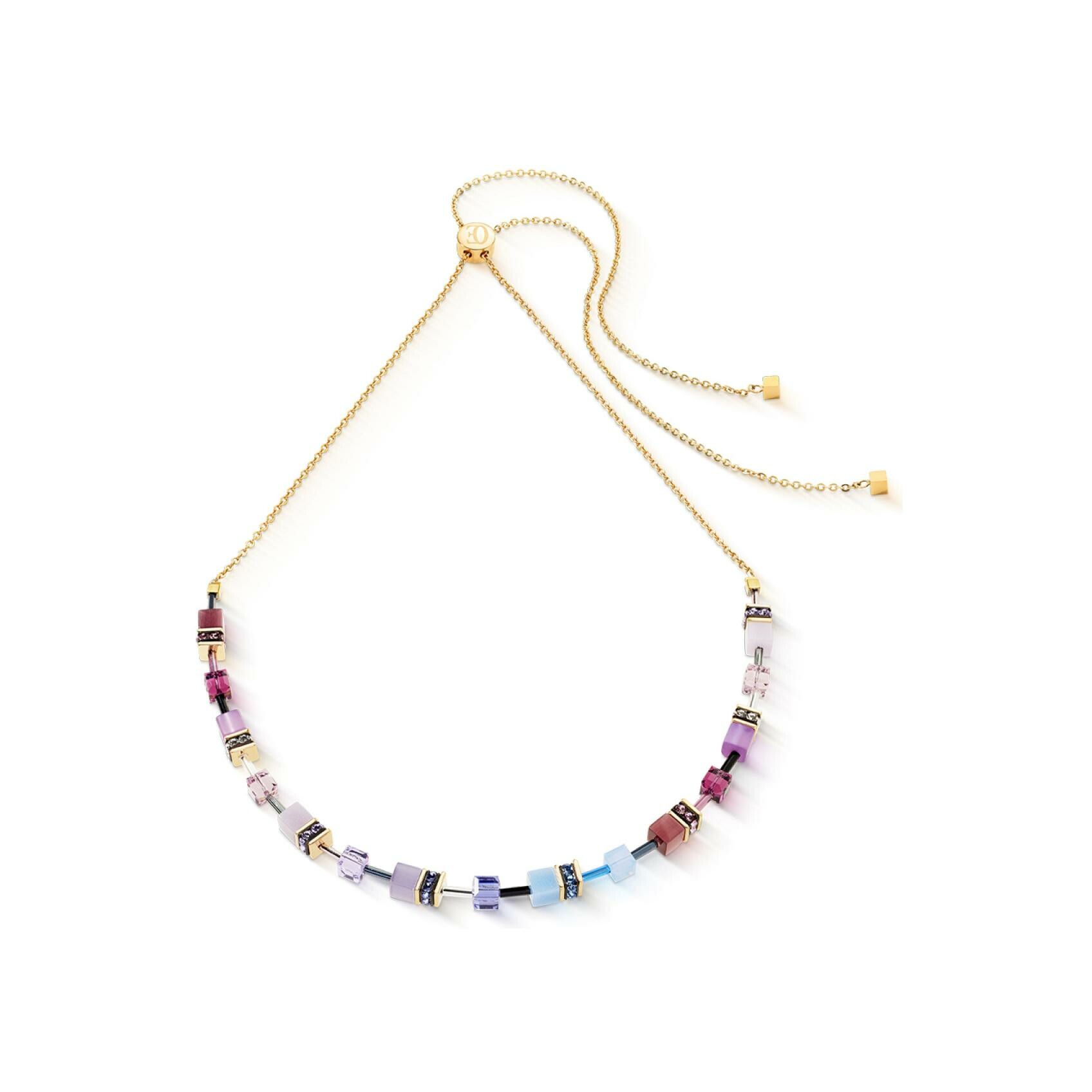 Collier Coeur de Lion GeoCUBE Iconic Chain Mystic Orchid en acier doré, cristaux Swarovski, oeil de tigre et polaris, strass et verre