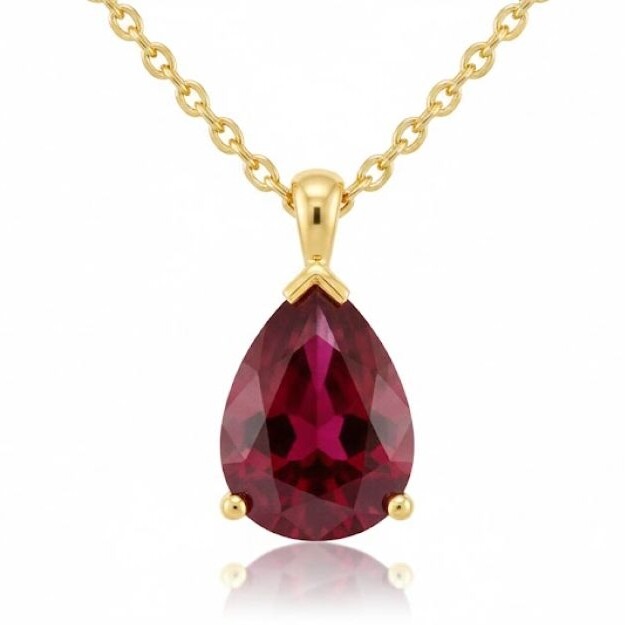 Ce collier de prestige en or jaune 18 carats incarne un luxe solaire et intemporel, où la chaleur du métal précieux sublime l'intensité d'un rubis magistral taillé en poire. La gemme, aux nuances pourpres profondes, capture la lumière avec une grâce souveraine, offrant un éclat envoûtant qui magnifie le décolleté d'une élégance absolue.