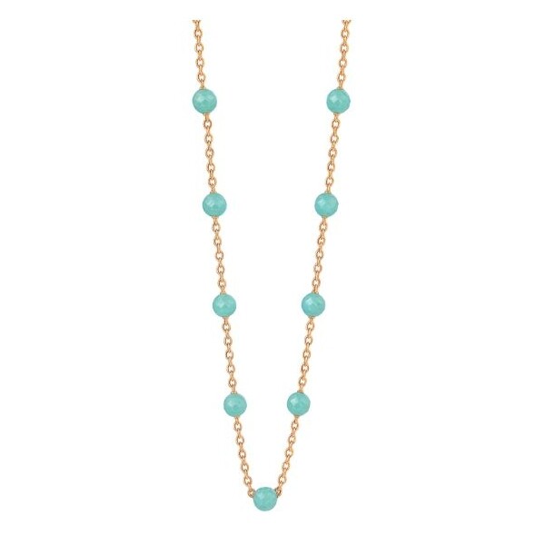 Cette délicate chaîne en or rose 18 carats séduit par l’éclat tendre de ses amazonites naturelles, dont les nuances vert d’eau évoquent la quiétude des lagons tropicaux. Chaque pierre, finement facettée, capte la lumière avec subtilité et contraste avec la chaleur poudrée de l’or rose, offrant un équilibre parfait entre douceur et éclat.