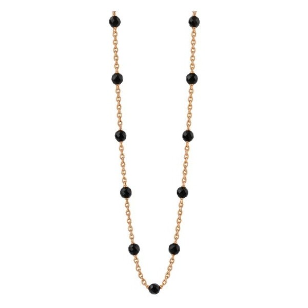 Collier or rose, perles de spinelles noires