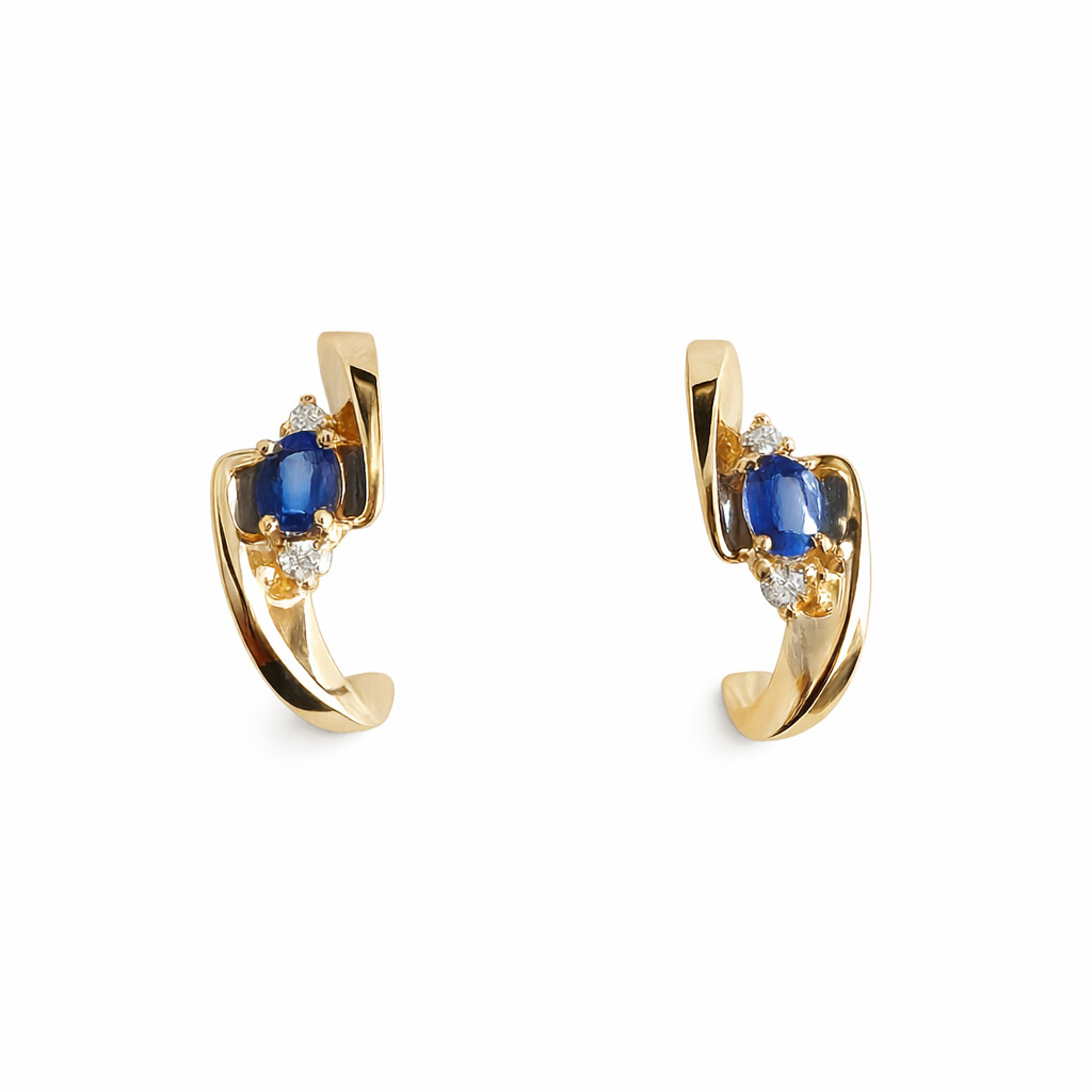 Sculptées en or jaune, ces créations dévoilent une ligne délicatement courbée, aux contours polis miroir, épousant harmonieusement le lobe de l’oreille. Leur design fluide et contemporain met en lumière un saphir bleu profond, taillé en ovale, dont l’intensité veloutée capte et reflète la lumière avec subtilité.