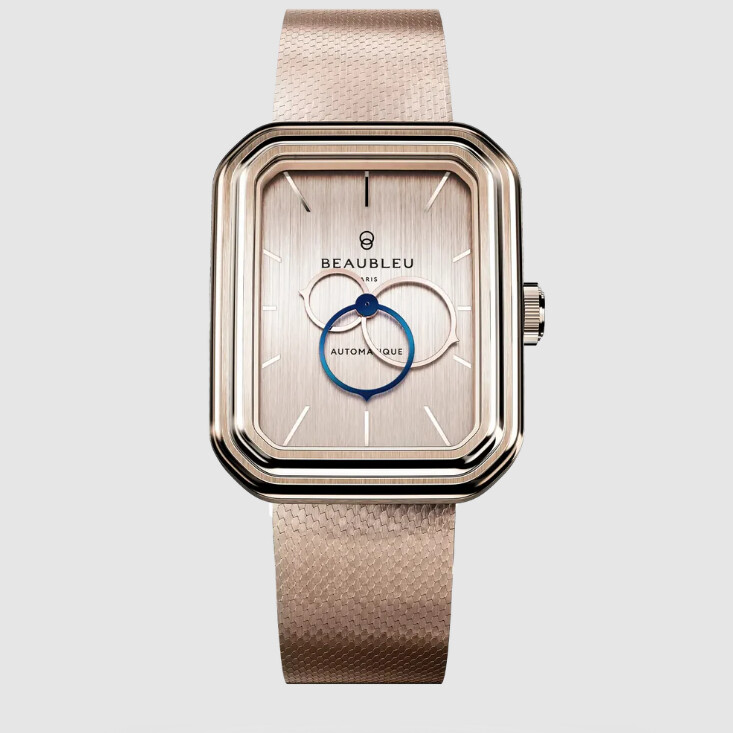 Avec son boîtier en acier or rose à la silhouette semi-octogonale, Ecce Figura Sienna alterne courbes dessinées et jeux de matière. En son centre, le cadran brossé, dans la même teinte, semble sculpté dans le métal, capturant la lumière sans jamais l’imposer. Les index polis s’appliquent avec justesse sur le pourtour, pour une lecture fluide et une allure toute singulière.